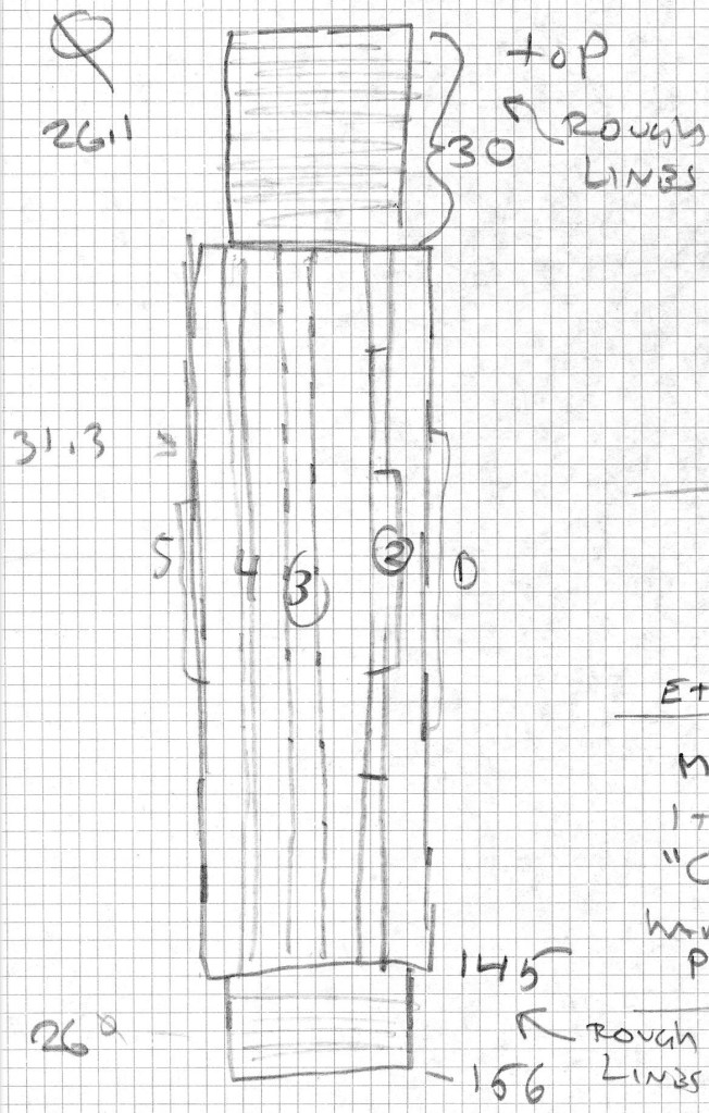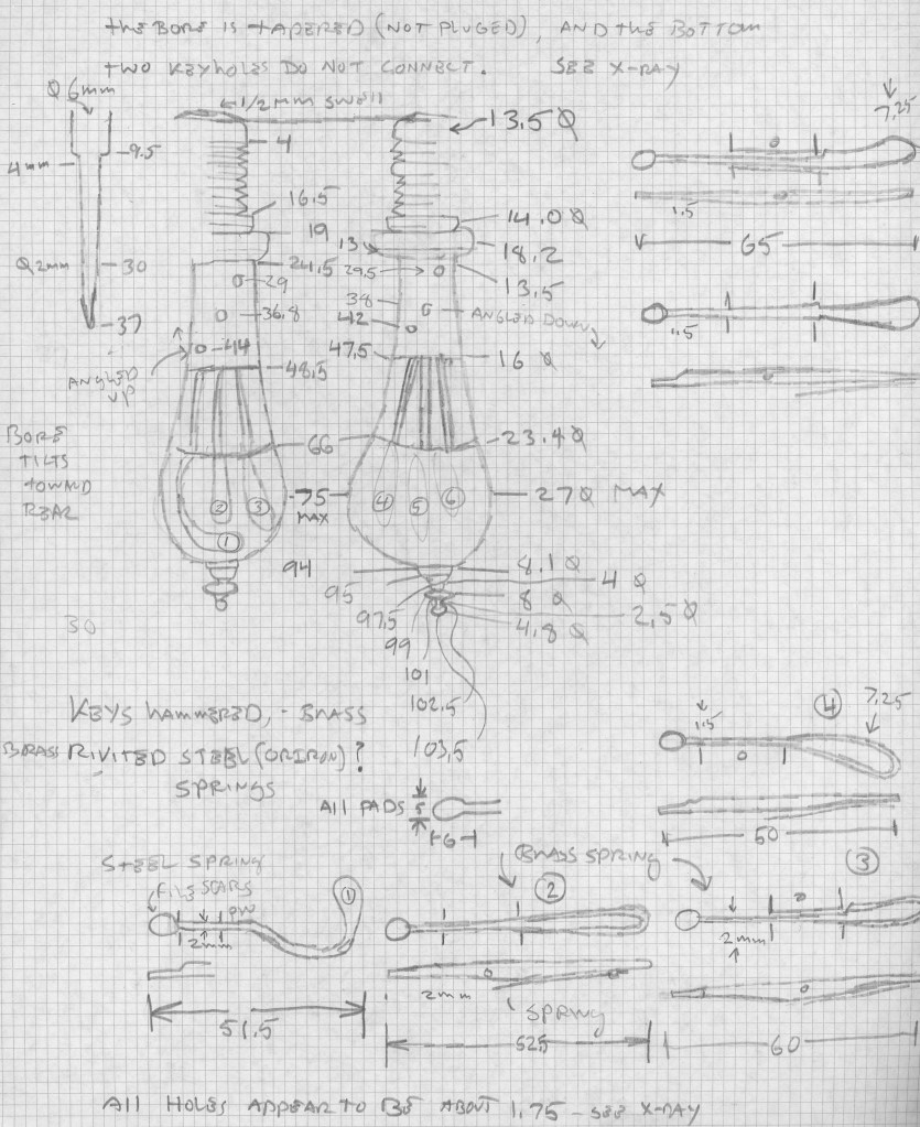 I’m adding my (very) rough notes from the measuring session. I’ve always wished to make measured drawings, but that may not happen, and I hope that my notes may help more than hinder anyone else interested in this instrument.